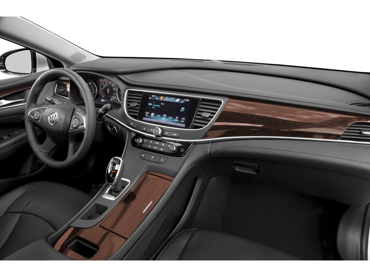 The base LaCrosse comes standard with 18-inch wheels, automatic xenon headlights, fog lights, heated mirrors, rear parking sensors, a rearview camera, keyless ignition and entry, remote ignition, dual-zone automatic climate control, simulated leather upholstery, eight-way power-adjustable front seats, a leather-wrapped steering wheel, available OnStar emergency communications, a 4G LTE Wi-Fi hotspot, an eight-speaker sound system, satellite radio, and the Buick IntelliLink infotainment interface that includes an 8-inch touchscreen, two USB ports, Bluetooth® connectivity, and Apple CarPlay and Android Auto smartphone integration.