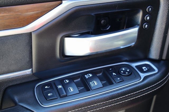 Laramie is as refined as it is capable. Styling cues start with a chrome accented grille, LED reflector headlamps, pushed-to-the-corner LED fog lamps, tailgate with damped opening assist and big trailer-tow mirrors. Inside, you will find leather-trimmed, suede-accented seats, a six-gauge color reconfigurable cluster, leather-wrapped steering wheel, wood-trim accents and premium overhead console for starters